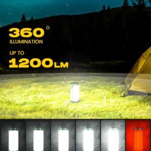 [Ultra Bright 1200LM & 5 Brightness Levels] With 106 LEDs evenly distributed 360° covering the entire lantern body, the tent lamp illuminates your surroundings with exceptional brightness and uniformity, eliminating any shadows for clearer views. 5 brightness dimmable for your various lighting needs. 1200LM “Super Bright” mode illuminates for 3 minutes, covering a larger area in emergencies if necessary. Essential lantern for the darkest & stormiest nights.