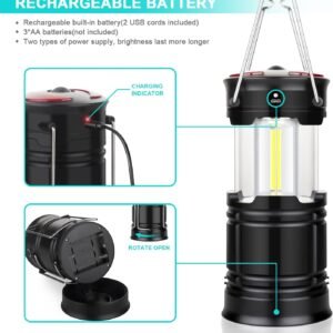 Durable & Water-resistant. Compact lamp body prevents it being damaged from collision. The rechargeable lantern is water-resistant due to its ABS military material and COB bulb. The Camping lamp can adapt to all kinds of severe hurricane and rainstorm weather. Suitable camping light for your indoor or outdoor activities.