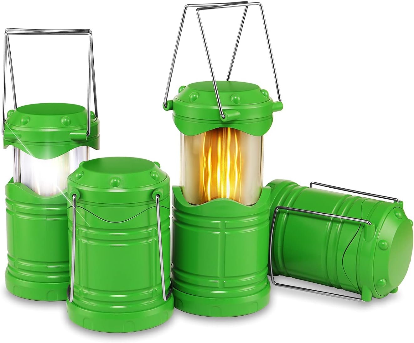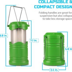 4 Pack LED Camping Lanterns, Collapsible Flameless Candles Tea Lights, Portable Battery Powered Camping Lights Emergency Supplies Kit, Green